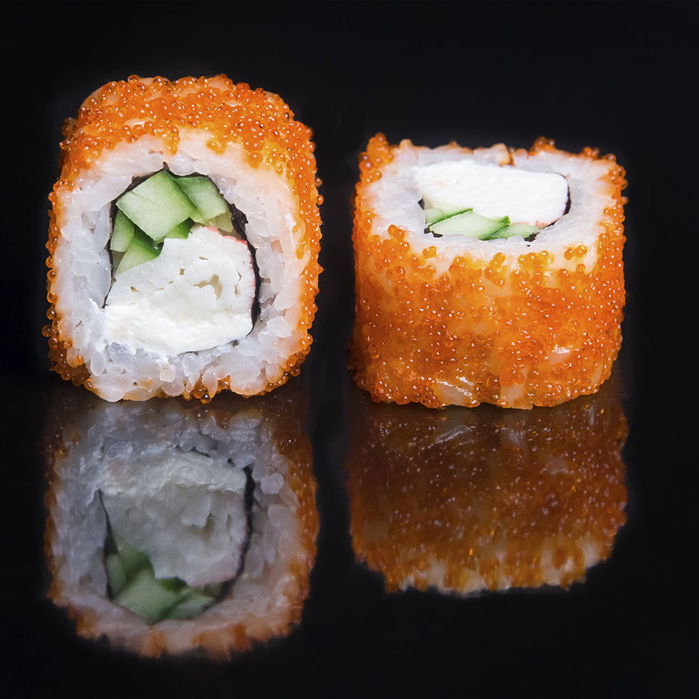 Калифорния — это лёгкий и сбалансированный вкус с нежной текстурой, где сочная начинка гармонично сочетается с мягким рисом, создавая свежий, комфортный ролл, который нравится с первого кусочка.