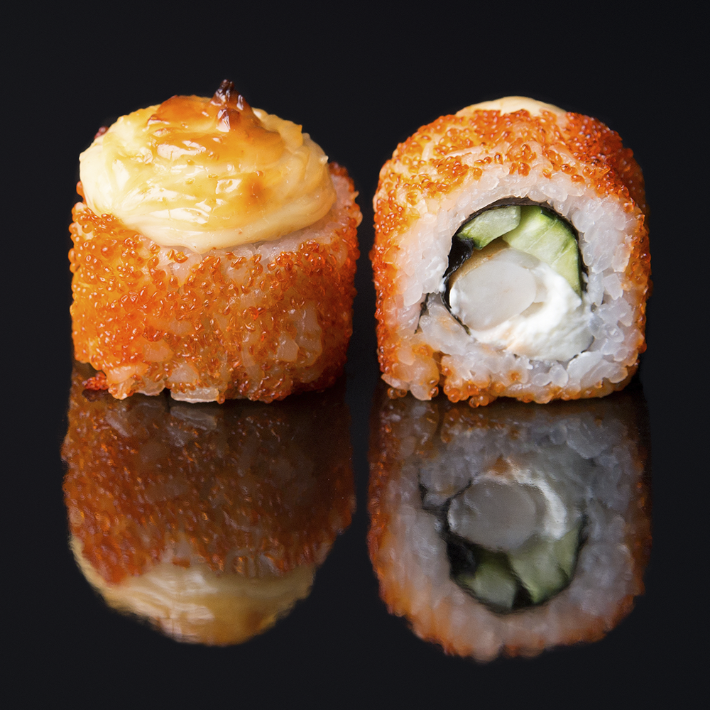 Запечённый с креветкой — это тёплый и сытный ролл с сочной креветкой под нежной запечённой шапкой, где мягкий рис и насыщенный соус создают сливочный, аппетитный вкус с ярким послевкусием.