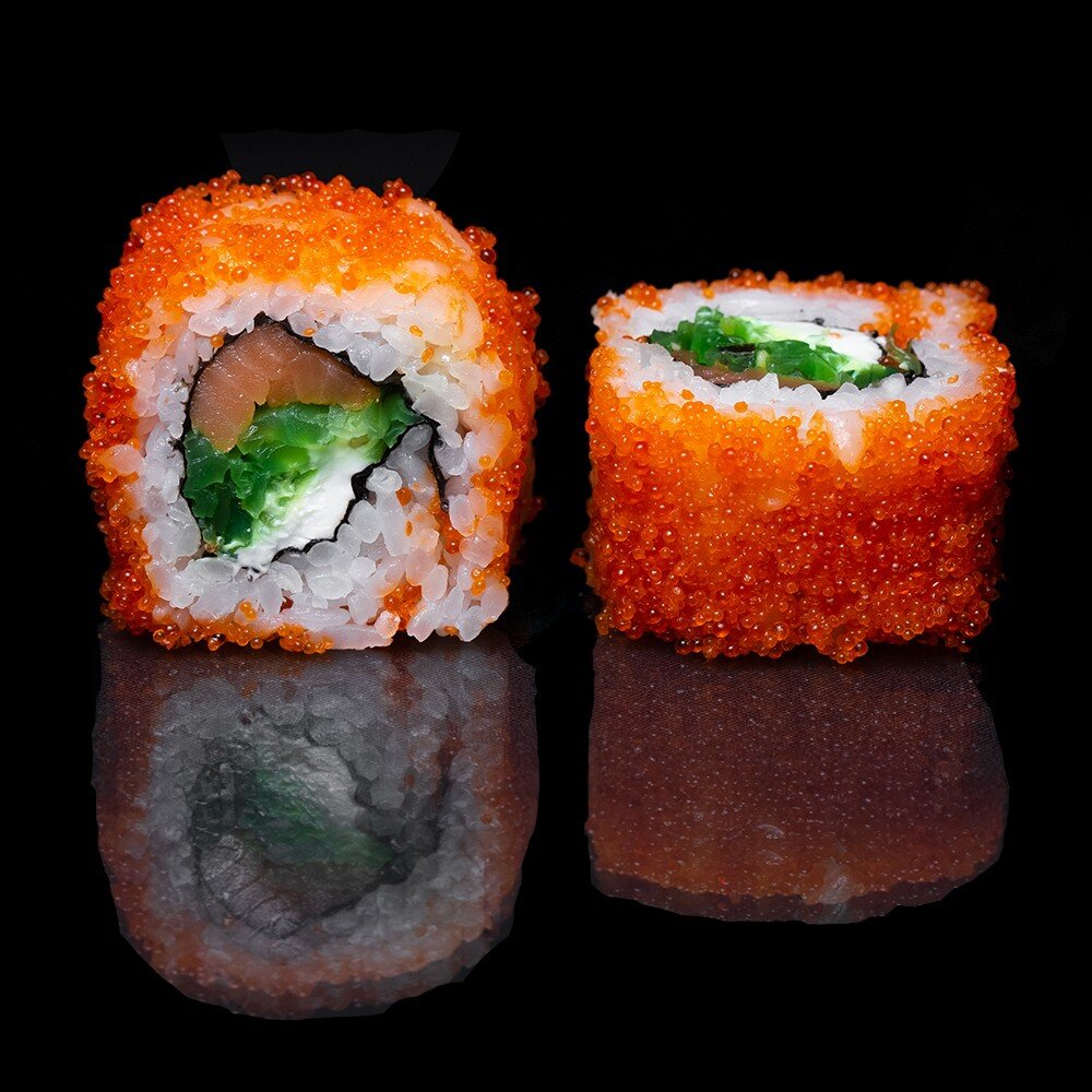 рис, нори, сливочный сыр, икра тобико, чукка водоросли, лосось